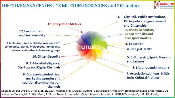 MIL Cities est un paradigme développé par l'UNESCO(3) en 2018 (https://en.unesco.org/milcities), qui fait référence à la construction ou à la transformation des villes par l'intelligence artificielle (IA) et d'autres nouvelles technologies avec une nouvelle vision intégrée en réseau avec l'environnement physique, les espaces urbains numériques qui privilégient l'éducation aux médias et à l'information (AMI), l'éducation à la pensée critique et créative, pour lutter contre les fake news, les deep fakes, les post-vérités et les discours de haine ; promouvoir l'éthique, le respect de la diversité et la lutte contre les barrières culturelles (genre, âge, ethnie, religion, handicap, poids etc.) ; centrer sur le citoyen ; valoriser l'écologie de manière durable; respect de la mémoire affective et du patrimoine des espaces urbains, promotion en ligne et stratégique de la santé préventive ; Promouvoir une nouvelle relation entre les milieux ruraux et urbains(4) ; nouvelle mobilité urbaine et gestion participative (e-gouvernement participatif).